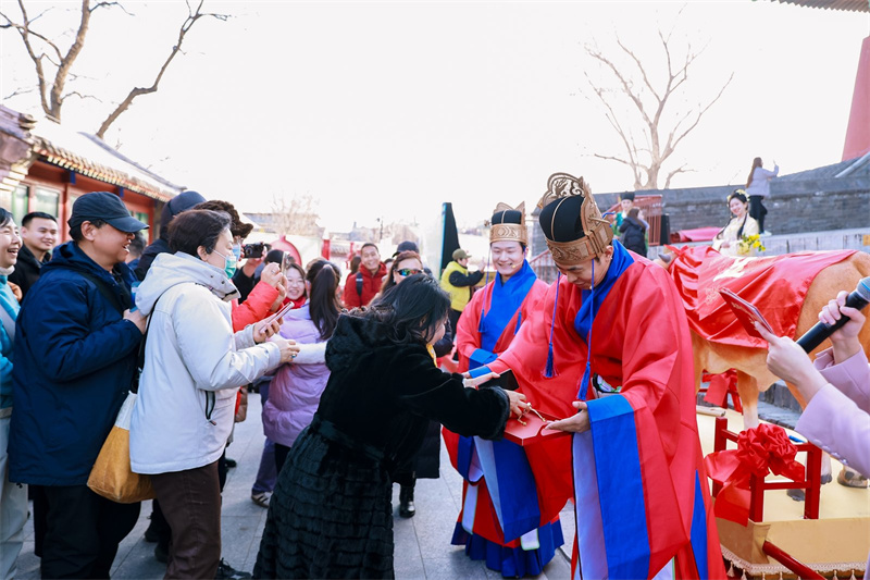 随后,礼官与游客进行立春习俗文化知识的答题互动,为大家送上春粮福袋,现场洋溢着欢声笑语,充满了浓浓的春意与年味,人们在节日喜庆的氛围中感受到了传统文化的魅力。