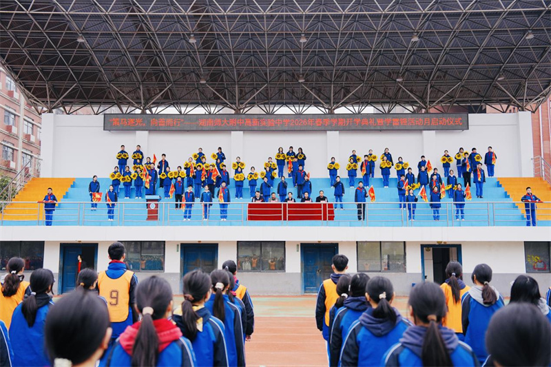 3月 5日,湖南师大附中高新实验中学举行 2026年春季开学典礼暨学雷锋日主题活动,党委书记陈文锋以《传承雷锋精神,践行“健康第一”理念,做步履铿锵的“义智”少年》为题,为全校师生讲授新学期思政第一课。