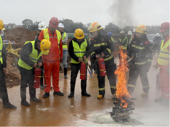 聚焦消防应急 筑牢安全防线 打造平安工地——中国化学南投公司常德污水处理厂项目部联合经开区消防站开展实战演练