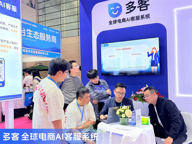其中,多客AI(Duoke AI)在店小秘展位内设置了专门体验区,吸引了不少卖家驻足体验。现场工作人员介绍,多客AI是店小秘面向全球跨境电商卖家推出的AI客服SaaS系统,基于前沿大模型与多智能体(Multi-Agent)架构,提供多平台消息统一管理、AI全天候自动接待、多语言自动翻译及智能跟单等核心能力。