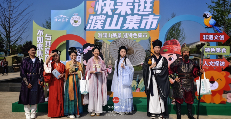最吸睛的是穿梭在人群中的古风NPC:身着葛衣的“濮山道人”手持拐杖葫芦,与游客合影时还不忘吟一句“悬壶济世”;“本以为只是爬山看景,谁知像走进了千年前的市井画卷。”来自邻县的游客张先生举着手机连蒲珊珊拍不停。