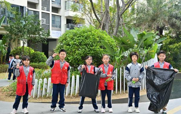 在青年志愿者的带领下,兴贤小学的“红领巾”们手持夹子、垃圾袋,对小区绿化带、休闲广场及主干道进行了“地毯式”清理。孩子们不怕脏、不怕累,草丛中的烟头、纸屑,路面的落叶都被一一清扫干净。看着孩子们认真的模样,路过的业主们纷纷竖起大拇指。