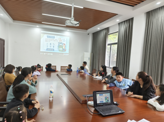 活动开场,工作人员播放的垃圾分类科普短视频迅速吸引了孩子们的目光。看到易腐垃圾经处理变成肥料滋养植物时,孩子们纷纷惊叹:“原来厨余垃圾能让小花长得更好!”